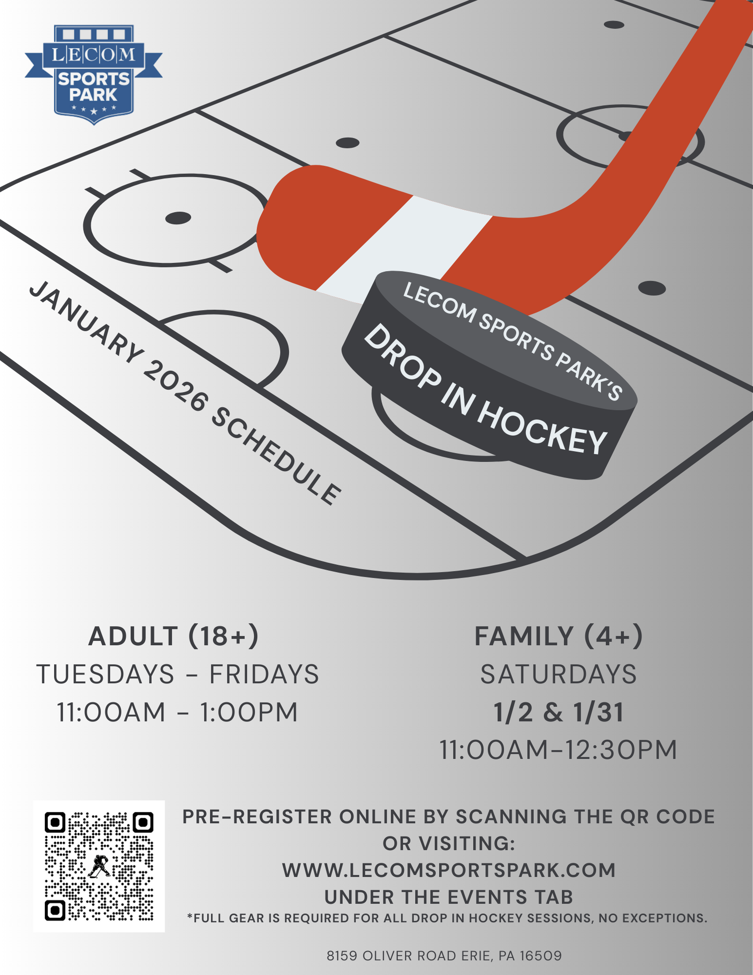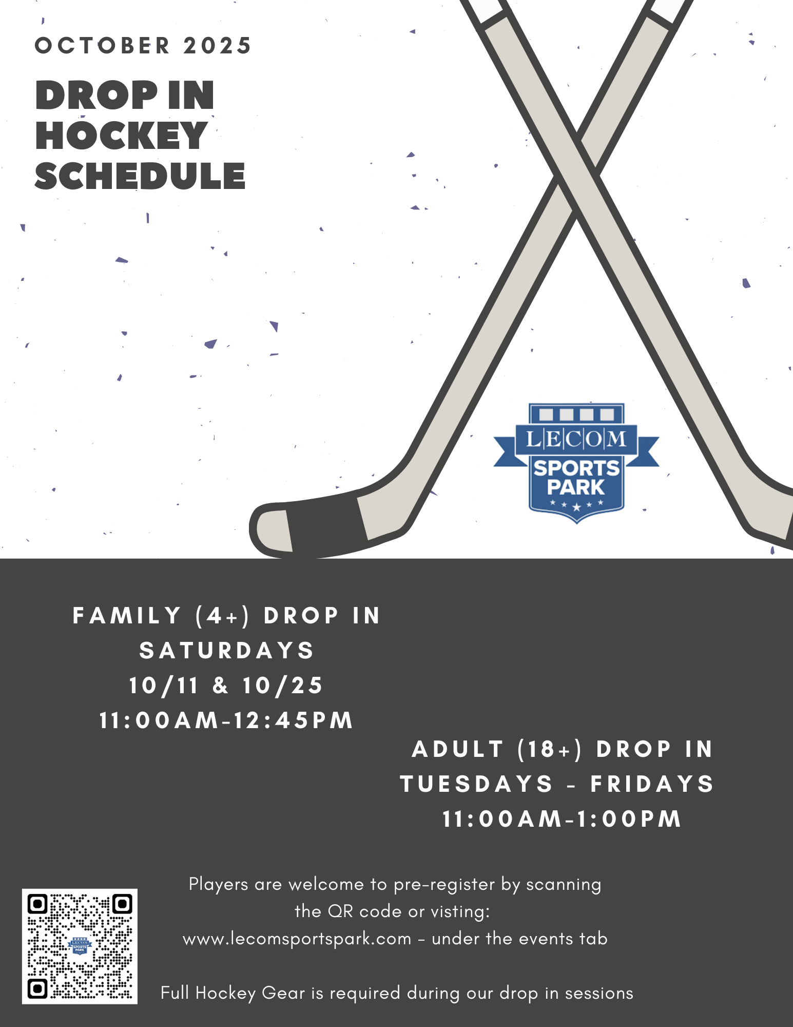 Please check our online schedule (under the Schedule tab above) to stay up to date with our Drop in Hockey Schedule.