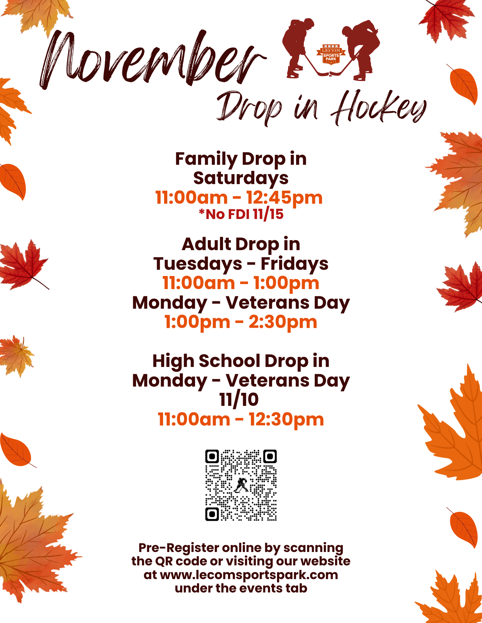 November 15th - due to LM Jamboree & Broomball tournament.