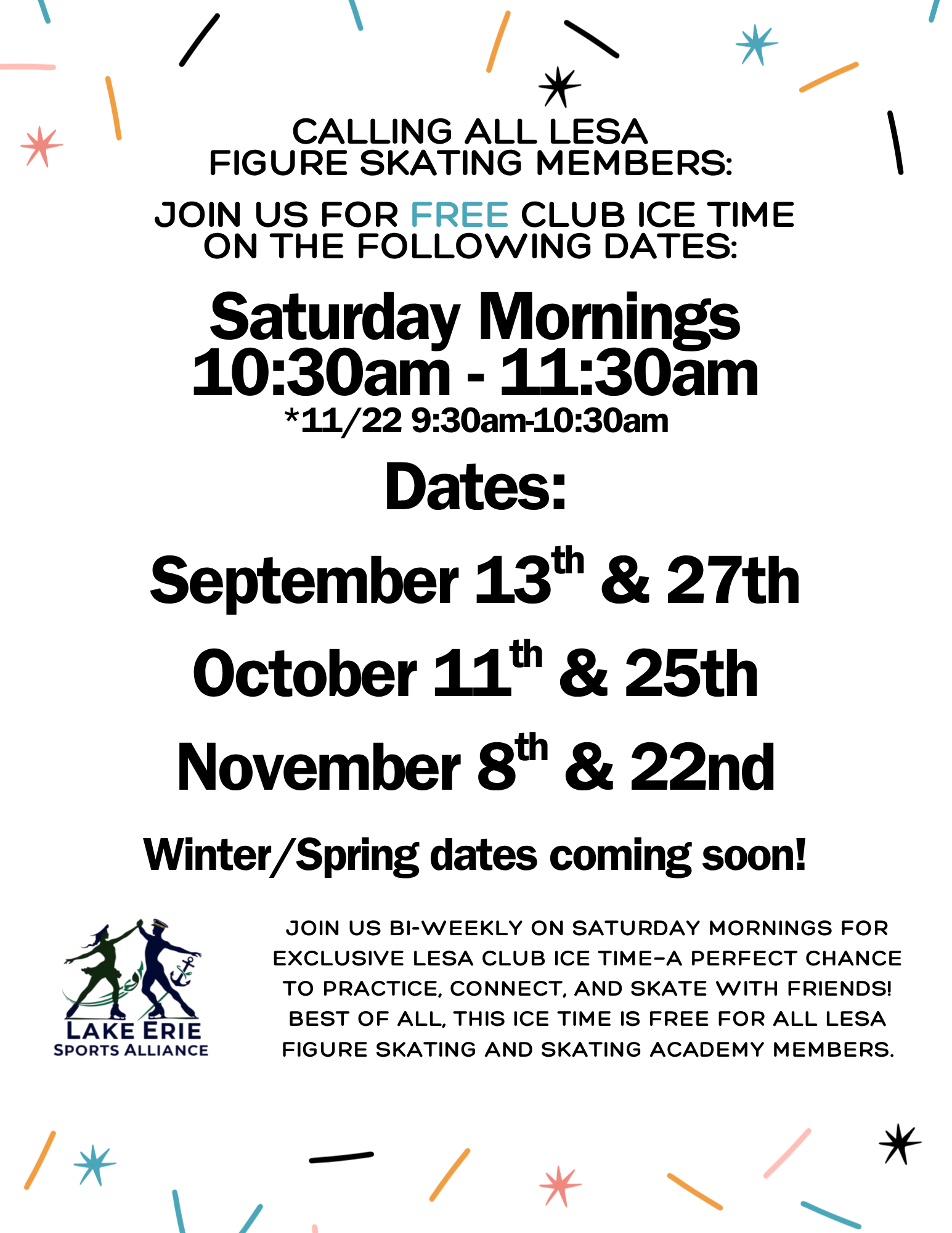 Lake Erie Sports Alliance Figure Skating is committed to fostering a love for figure skating through a strong grassroots program while supporting athlete development at all levels. We strive to create a positive, inclusive, and engaging skating environment for skaters of all ages and skill levels.