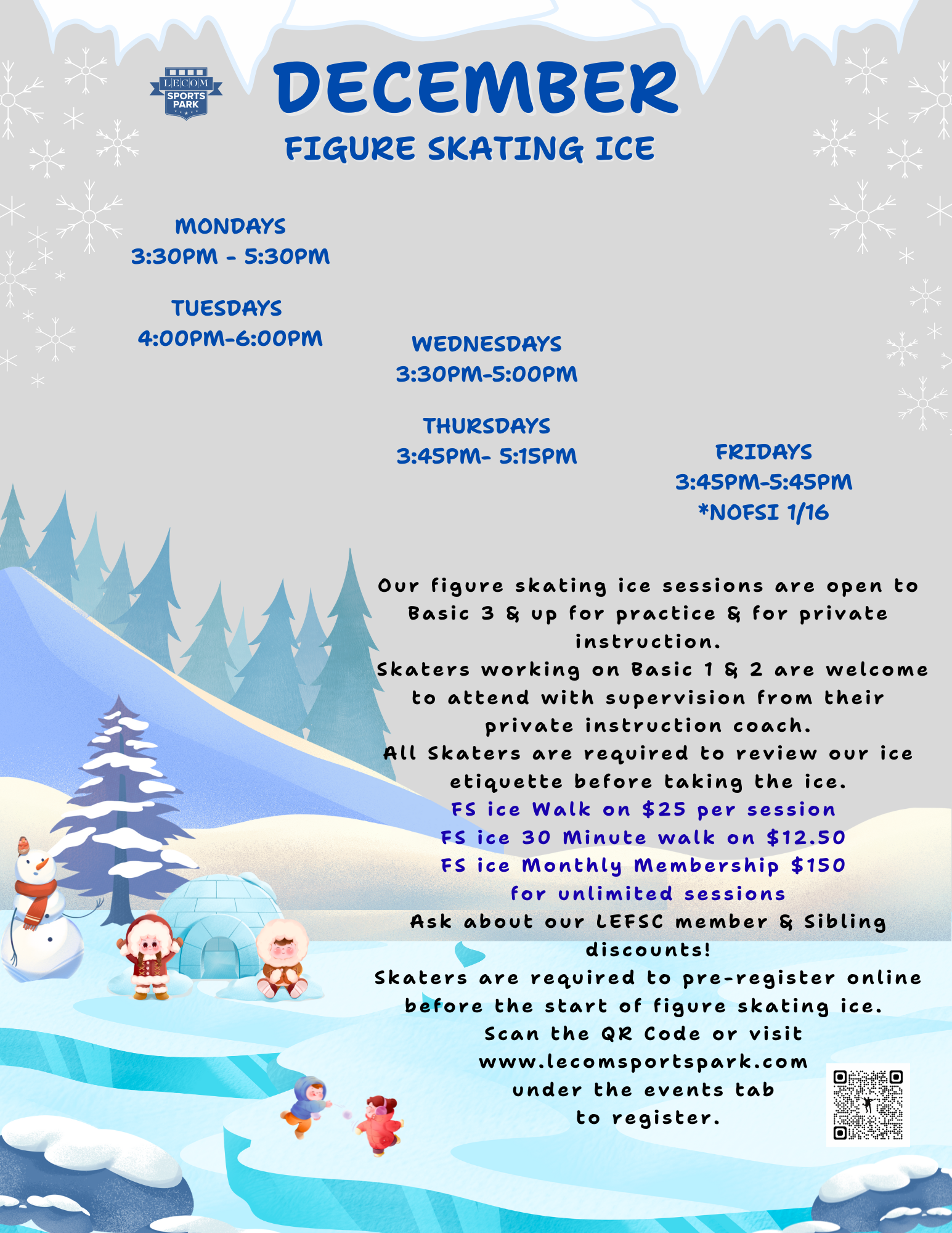 LECOM Sports Park has a zero tolerance policy for bullying or any type of misconduct/bad behavior during Figure Skating ice. Management reserves the right to remove any individuals who do not follow our ice rules & regulations.