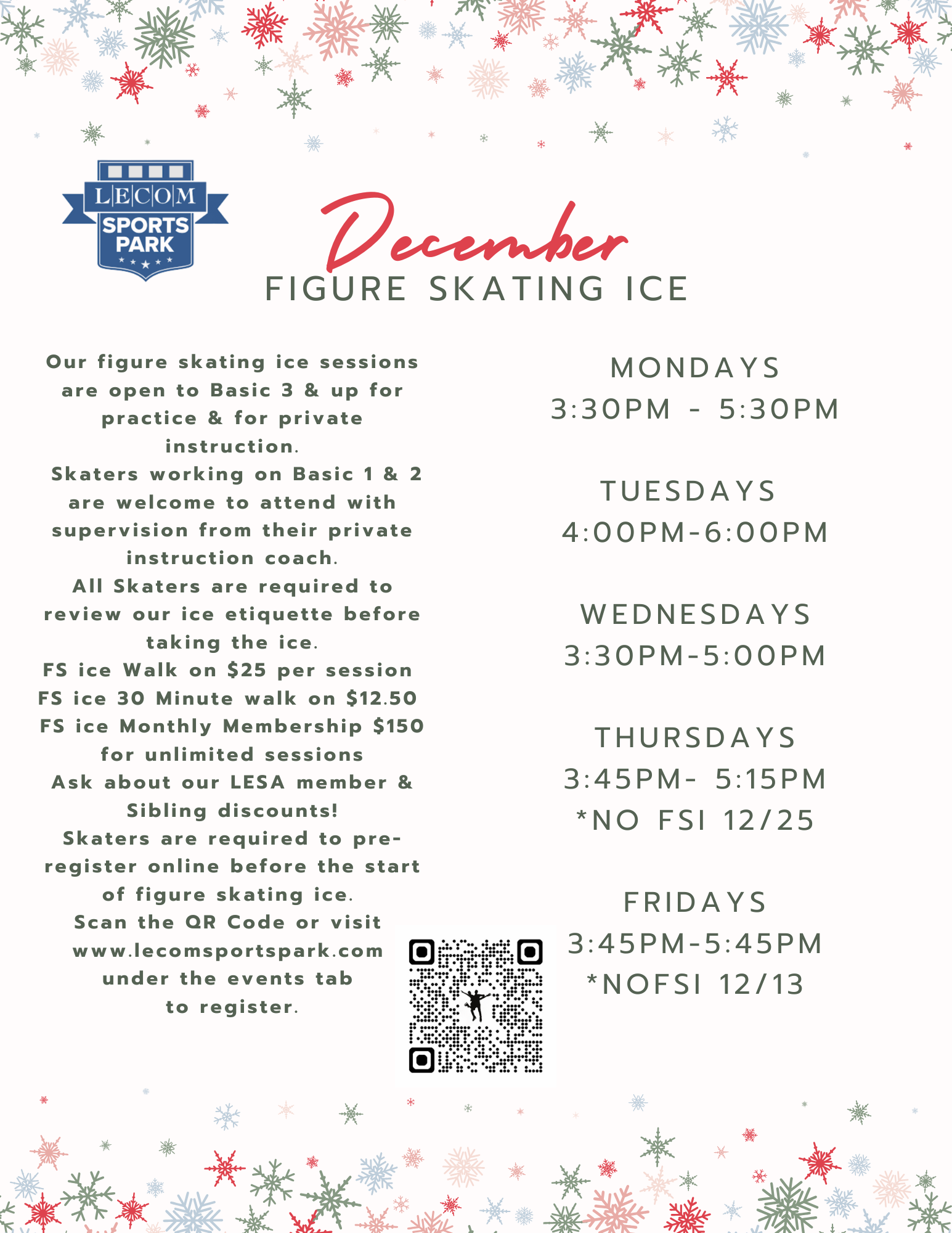 LESA's Skating Academy members, LECOM Sports Park's FS ice members & walk-on skaters are expected to be respectful, kind, and courteous to each other while attending our figure skating ice sessions.
